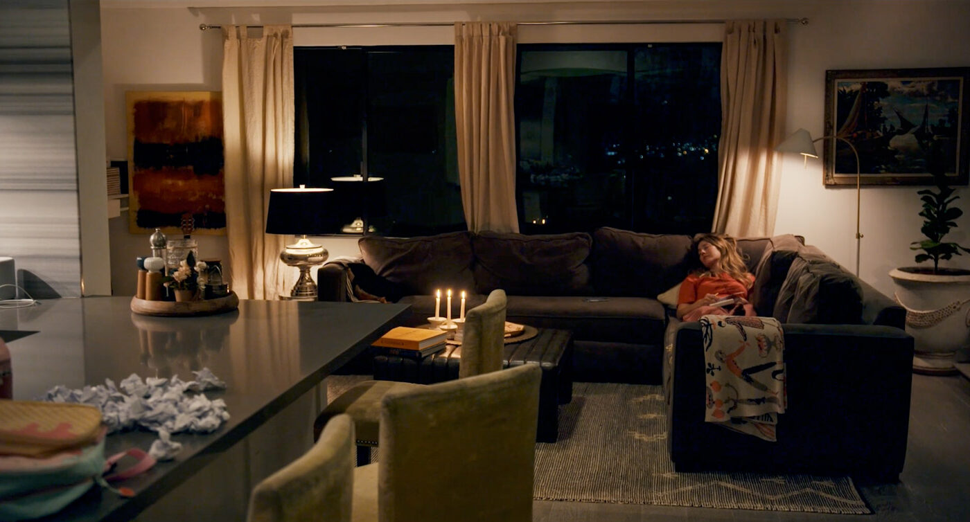 That second night tempted me to supplement the lighting in the house with a few additional units, but I resisted. My main concern was the harsh overhead PAR cans built into the ceilings. We cut small pieces of diffusion to soften the contrast and widen their spread across the large living room. They were already on dimmers, so we didn’t need much effort to set the final look.