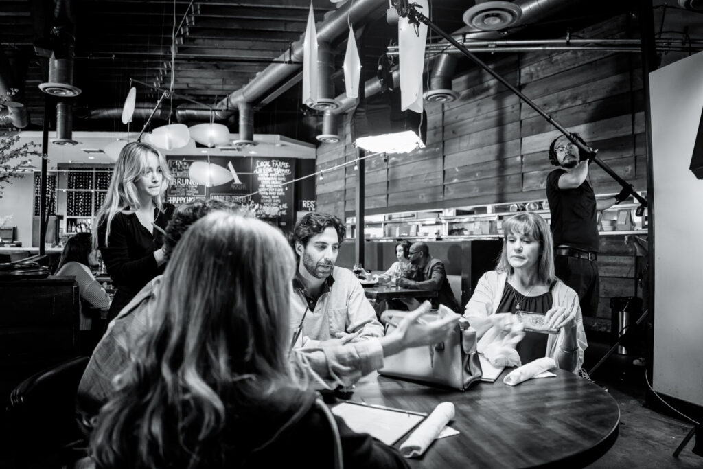 Once we committed to that approach, everything became about efficiency. Shooting so much dialogue with four characters—primarily seated—at a dinner table required a very specific plan. Ari, Bretta Lichtenwalner (our incredible 1st AD), and I spent many hours designing coverage that would feel dynamic without slowing us down. By making Gracie’s out-of-body kitchen sequence a night scene and moving it to our second day, we drastically helped our schedule and gained wonderful visual contrast.